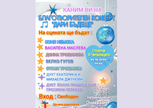 Благотворителен концерт „Дари бъдеще“ събира подкрепа за изграждането на Център за деца и лица с увреждания в Стрелча