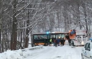 Снежно препятствие: Закъсал автобус в Копривщица