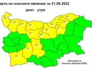 За 21 юни е обявен жълт код за силен вятър в 14 области. Предупреждението за опасно време е в сила за областите Благоевград, Пазарджик, Пловдив,...