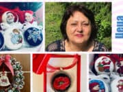 Цеца Ружекова бродира Дядо Коледа и снежинки върху коледни топки и венци