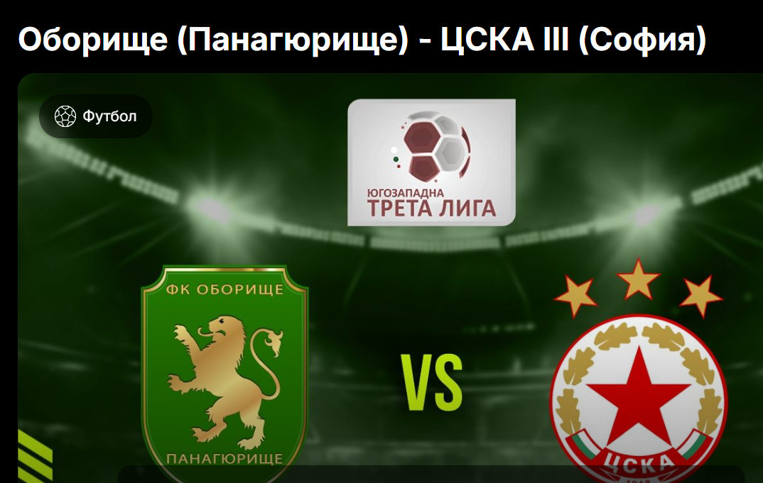 Оборище (Панагюрище) излиза у дома срещу ЦСКА III (София) в мач от 24-ия кръг на Югозападната Трета лига.